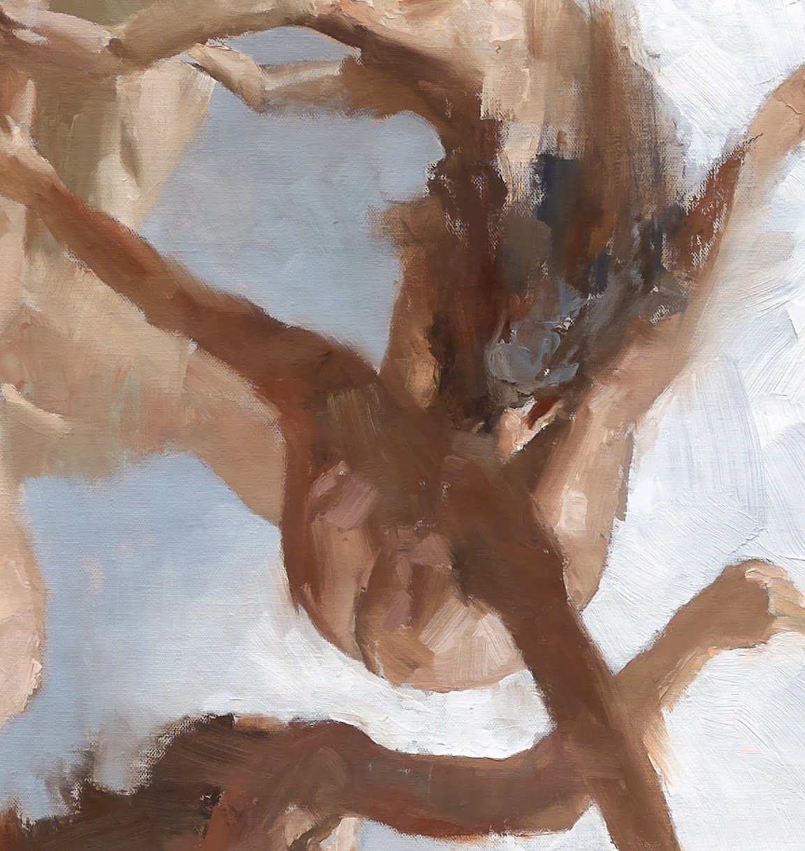 Shadow control is critical to a successful painting. And they are the greatest teachers for understanding depth, value control, and…oh yeah, edges. Now you get what I mean by soft and sharp edges, yes? What observer hasn’t noticed how shadows vary in such a short range of vision? Look at tree limb shadows on the ground and the information slaps you upside the head. The limbs closest to the ground are sharpest, while the limbs up high cast very light, soft shadows. It’s their edges that communicate this the most.
