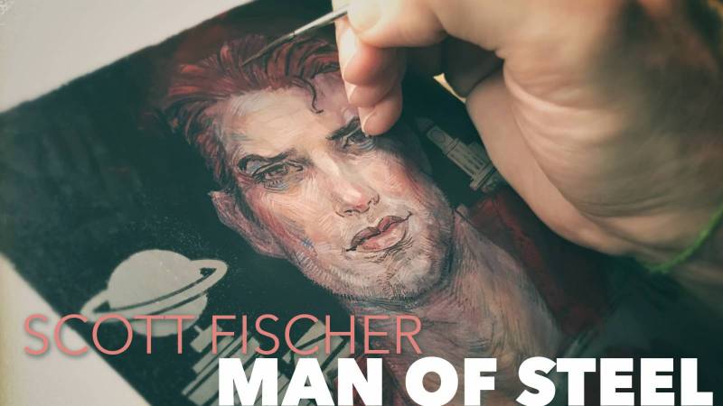 In this demo, Scott Fischer details his painting process in real time, exploring a variety of mediums, including digital drawing, acrylic painting, and even metal engraving! The final result is a superhero portrait painted on metal, which adds an incredible sheen to his image, and showcases just how creative you can get with even a simple portrait.
