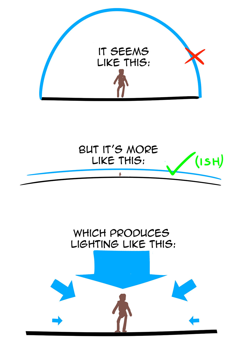 But the light of the so-called sky dome is not non-directional—it comes mostly from above, because the sky is not really a dome.