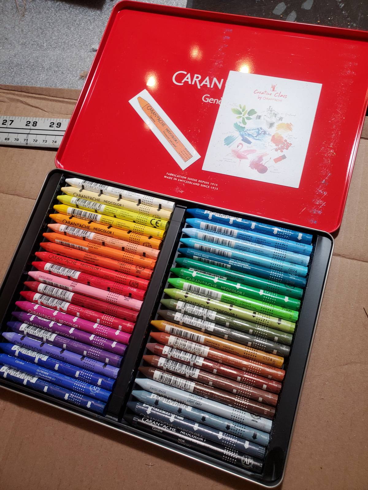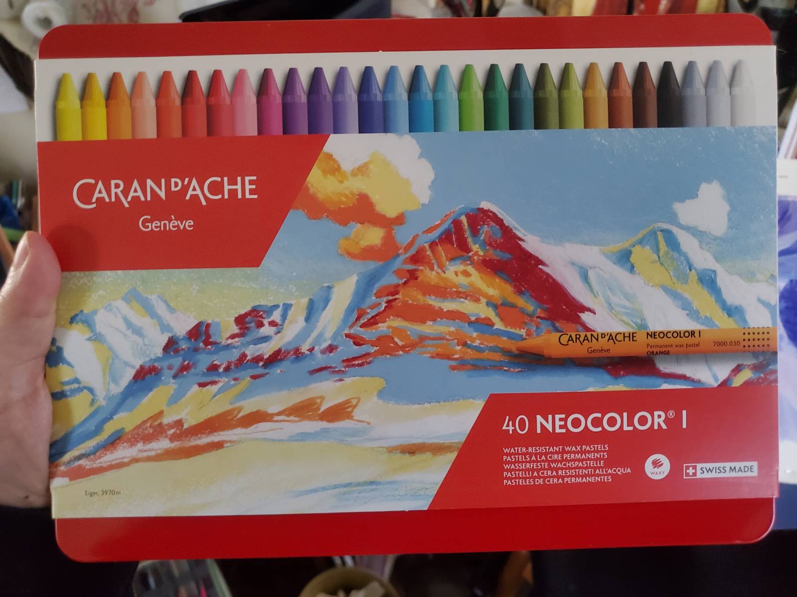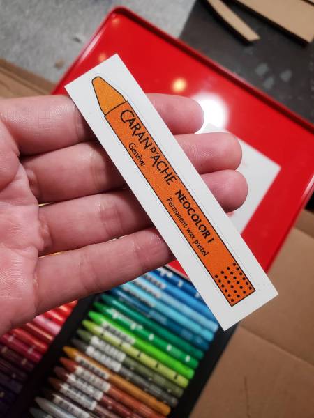 I liked them so much I ended up ordering the full set, and charmingly it came with a sticker of a wax pastel in it, in exactly the color I used for all the poppies – Flame Red (which looks orange to me). Destiny? A coincidence? Or do they all come with the same color sticker?