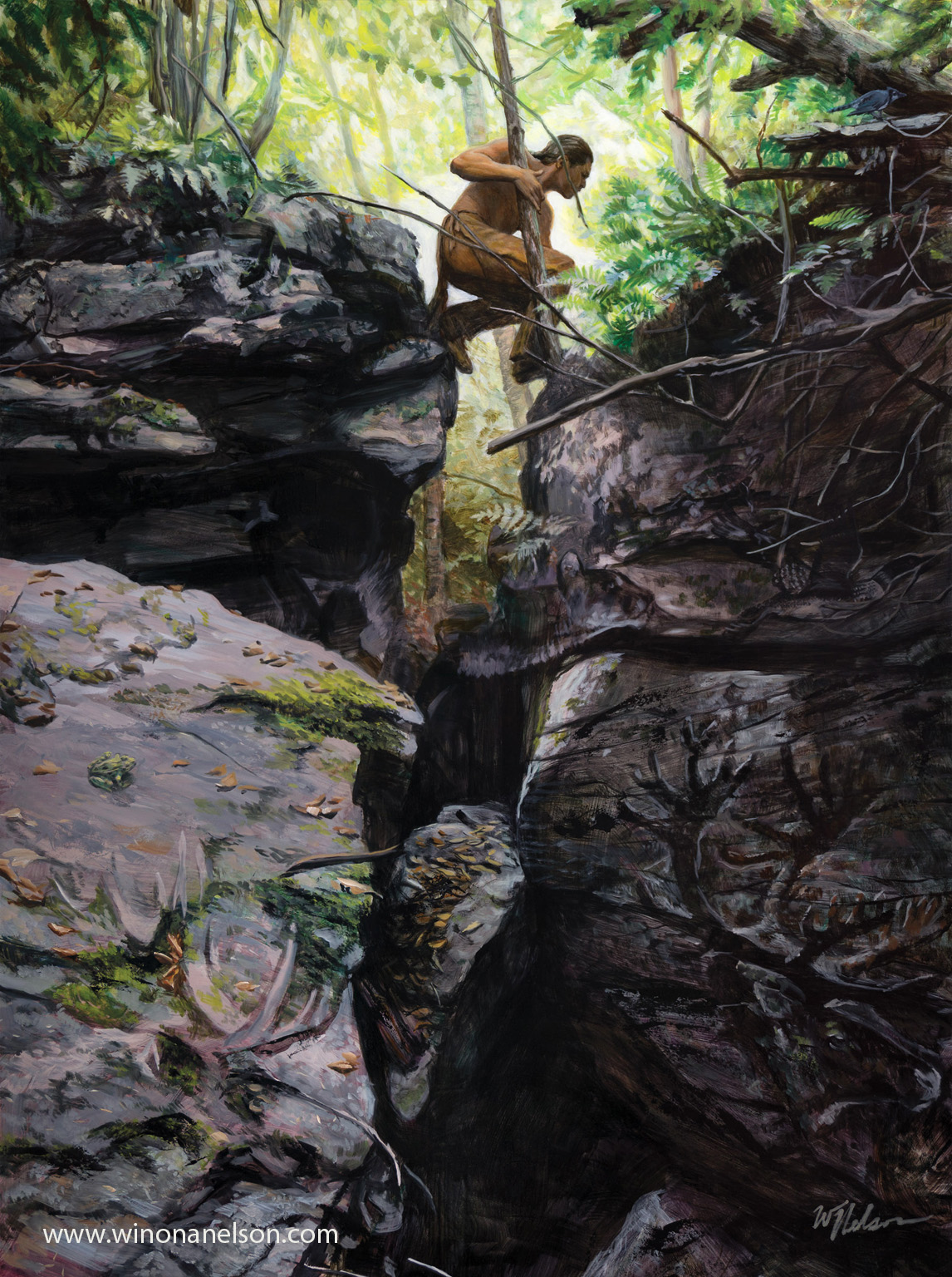 A little over ten years ago, I was working on pieces inspired by my Ojibwe heritage. I had been planning a painting of the trickster figure/folk hero Nanboozhoo. I set up a cabin trip in the Poconos to go shoot photos for forest inspiration and reference. I invited some friends and family, so Simon was there in the woods with me, like old times.