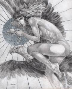 Anyway here is the drawing I speak of. It was called “My Precious”. The idea was just to do a new painting of this figure… at first.