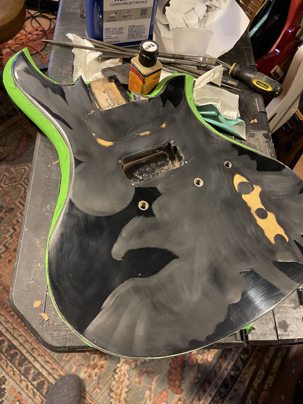 I will update this post when I have to final glamor shots of the guitar fully assembled! Check back in! Horns up!