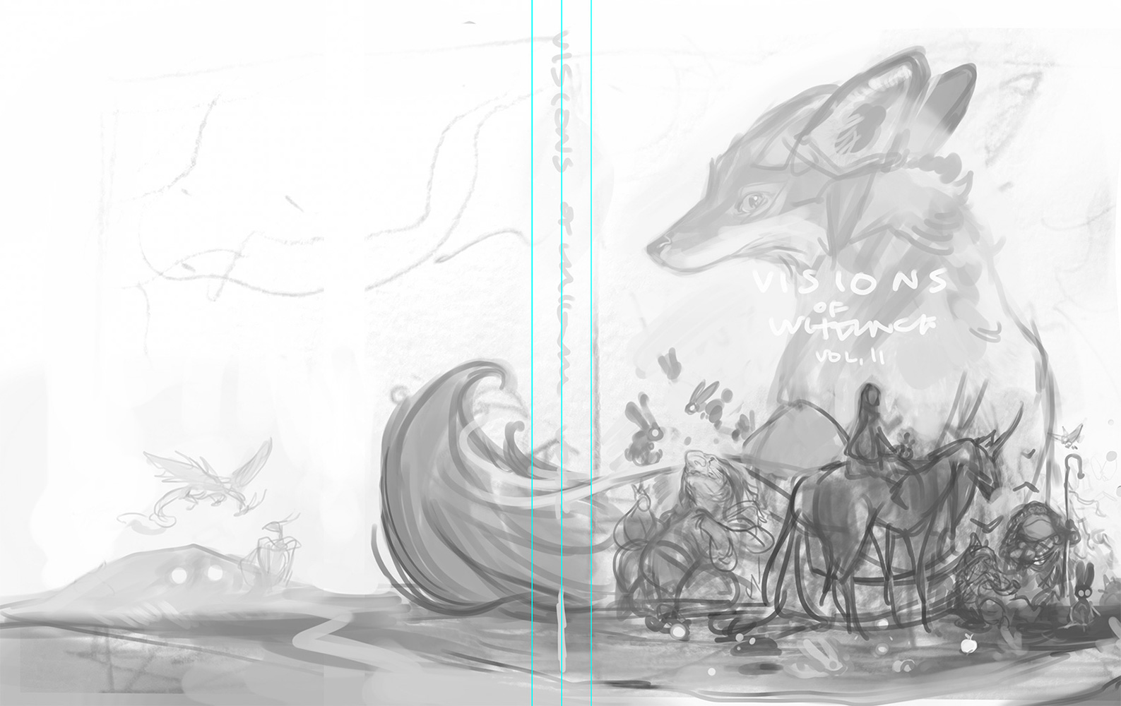 As with Vol. I, my goal was to create a single piece that could represent all five sketchbook to varying degrees, directly and indirectly. And I’ll leave the details up to the viewer to discover, with this second cover, which figure or creature calls back to which individual sketchbook.