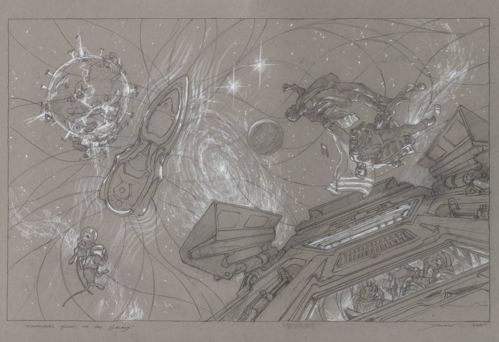 In the lobby we were able to talk in greater length about possible collaborations when Bryce revealed that Wraithmarked was negotiating to land the Hitchhiker’s Guide books from the Adams’ Estate for a limited edition treatment. I shared my love of those books, my story of meeting Douglas decades ago, and said to call me if that deal came through as I would love to contribute something.